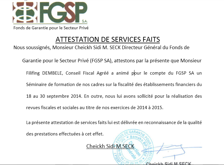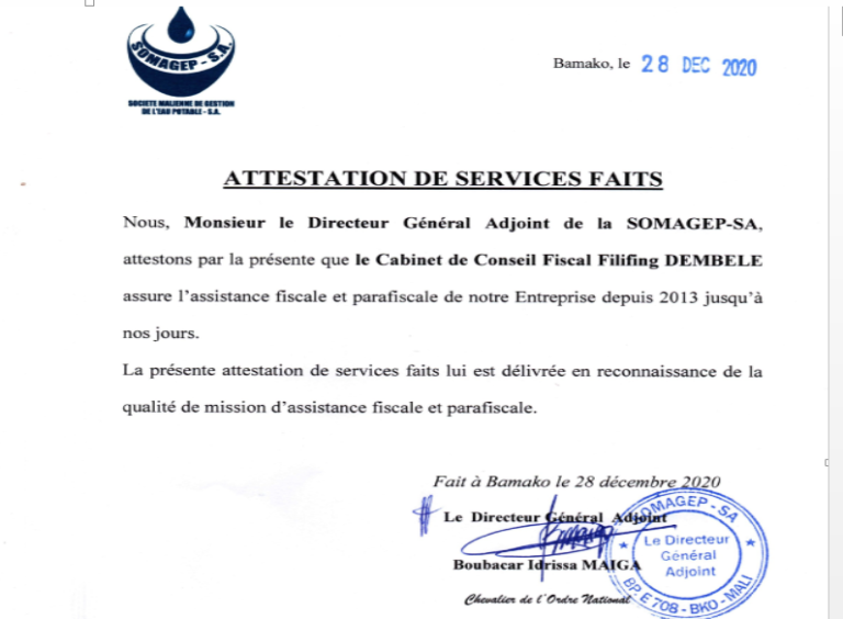 Une parfaite maîtrise de la législation fiscale, sociale et du droit des affaires au Mali.